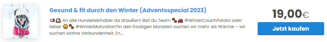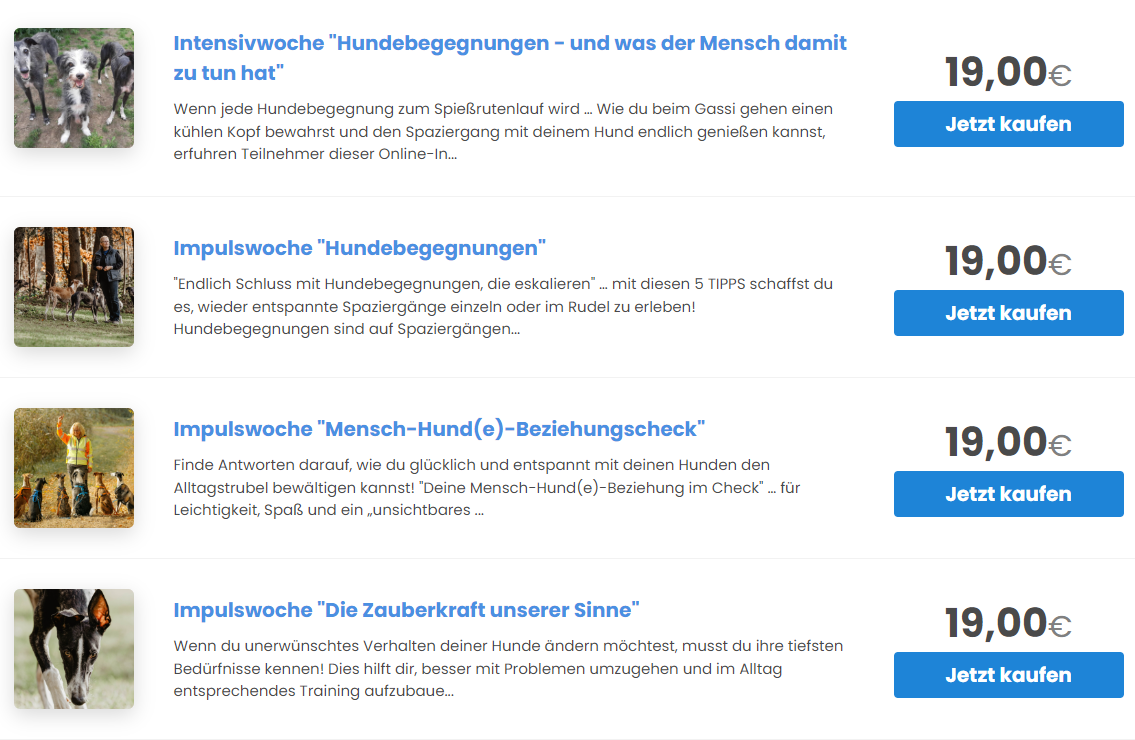 Diese Infos und Videos waren Inhalte kostenloser Intensiv- und Impulswochen in der Facebookgruppe (2021-2023) und werden danach allen interessierten Hundehaltern für den weiteren Gebrauch zur Verfügung gestellt! Weitere Infos bei KLICK auf das Foto.